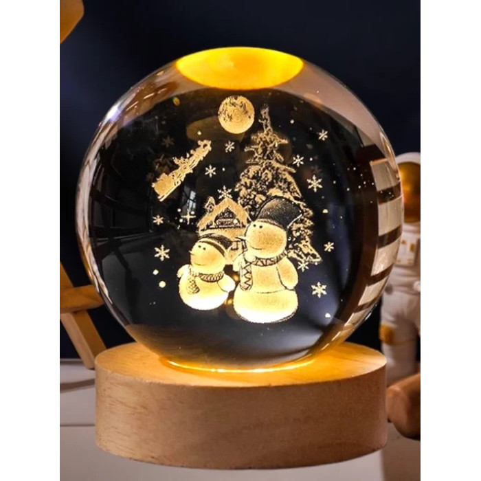 Куля на підставці-лампа різдвяний сніговик (RD-4075) — — це стильний і чарівний елемент декору, який створить атмосферу затишку та святкового настрою у вашому домі. Завдяки діаметру всього 6 см, цей шар ідеально підійде для будь-якого інтер'єру, а його кристалічний матеріал надає виробу елегантності та сяйва. RGB підсвітка створює колірні ефекти, додаючи яскравості та радості в будь-які умови. Кабель завдовжки 95 см забезпечує зручність у розміщенні, а живлення від USB-порту (5 В) робить пристрій легким у використанні без потреби в додаткових джерелах живлення.