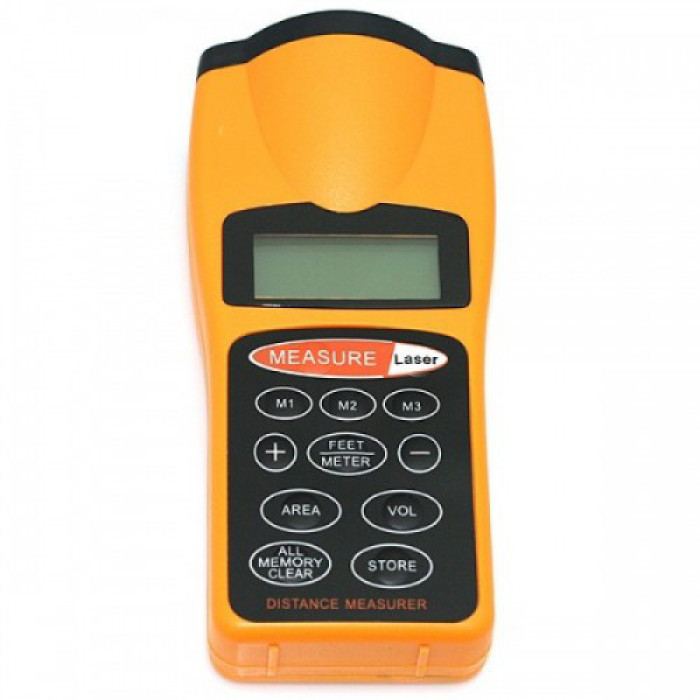 Дальність вимірювання до 18 метрів, точність 2%, підсвітка, пам'ять, розрахунок площі та об'єм, складання і віднімання, лазерний цілевказівник. Багатофункціональна ультразвукова рулетка CAPITAL CP-3007 ідеально підходить для швидкого вимірювання розмірів об'ємів, приміщень, де не потрібна висока точність. В принципі роботи цього приладу лежить замір швидкості проходження ультразвуку до об'єкта та назад. Але оскільки ширина розсіювання ультразвуку в кілька разів більша, ніж у лазерного променя, то й точність вимірювання за допомогою ультразвукового далекоміра в кілька разів гірше, ніж за допомогою лазерної рулетки. Ультразвуковий далекомір CAPITAL CP-3007, як і лазерні рулетки, проєктує на об'єкт вимірювання лазерний промінь червоного кольору. Але в цьому приладі лазерний промінь лише показує Вам, до якого об'єкта здійснюється замір. Проте ультразвукове рулетка CP-3007 має пам'ять, а також вміє розраховувати площу, об'єм, підсумовувати та віднімати відстані. Дисплей у далекоміра невеликий — однорядковий, з приємною блакитною підсвіткою. Джерелом живлення є 9V-батарейка, типу "Крона" (до комплекту не входить). Знайомлячись зі зразками продукції, представленими на сайті, необхідно брати до уваги деякі моменти, пов'язані з точністю передавання кольору та зовнішнього вигляду продукції