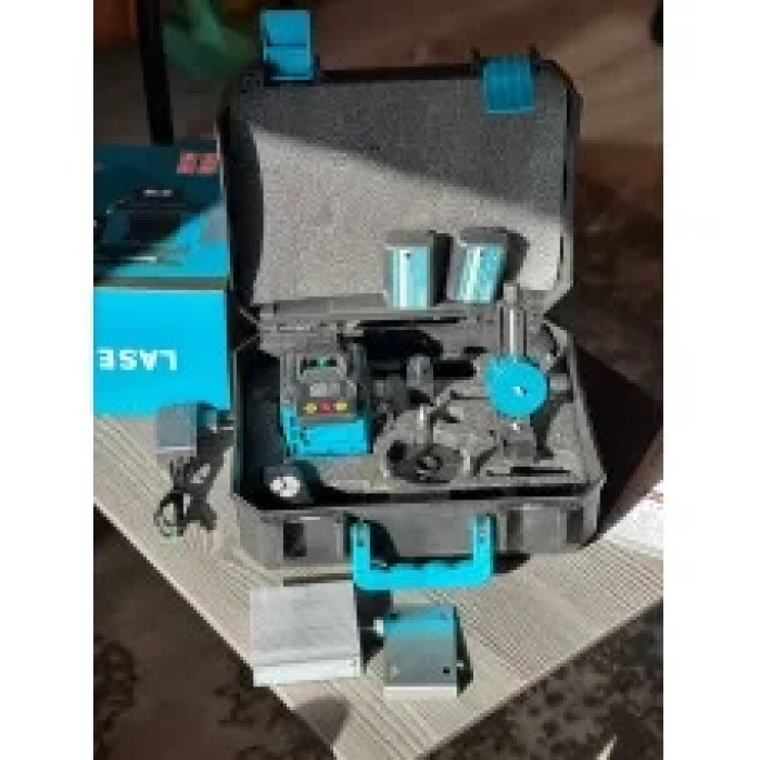 Модель обладнана дистанційним пультом керування, що дає змогу зручно вмикати/вимикати нівелір або перемикати режими без потреби підходити до пристрою. До комплекту входить дві акумуляторні батареї (4V, 5000 mAh), що забезпечують тривалу автономну роботу, а також повний набір кріплень і аксесуарів для зручного встановлення.