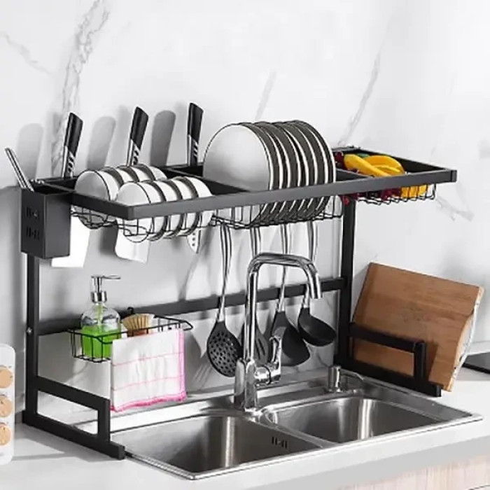 Металева дворівнева кухонна сушарка для посуду, полиця для столового приладдя