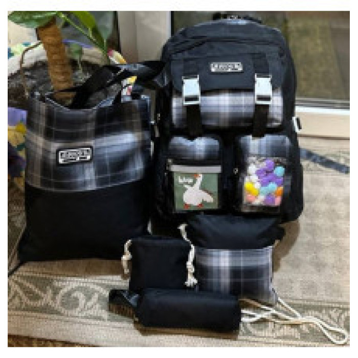 Набір 5 в 1 шкільний рюкзак (Південок і Кулі), сумка, клатч, пенал і мішечок MFG-2-618— це практичне та стильне рішення для учениць молодших і середніх класів. Він поєднує функціональність, зручність і акуратний рожевий дизайн у корейському стилі. До складу набору входять: рюкзак, сумка через плече, косметичка, пенал і маленька сумочка — все, що потрібно для організації шкільного приладдя та особистих речей.
