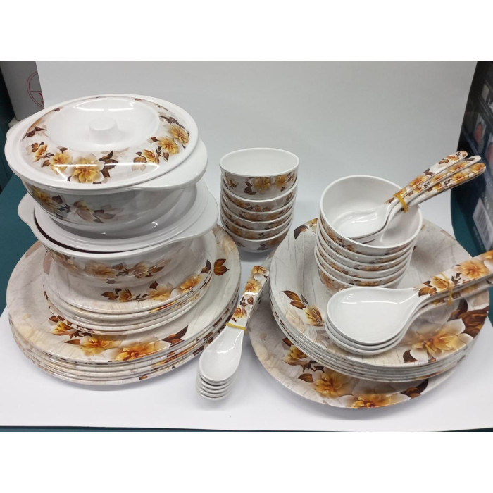 Набір посуду No2 (50 предметів) пластик — виготовляється з термореактивного пластику, який у розплавленому стані під впливом преса набуває будь-якої форми, після чого застигає до стану твердої речовини. Водночас відбуваються хімічні реакції, унаслідок яких полімери «зшиваються» в нові з'єднання, надаючи матеріалу низку чудових властивостей: