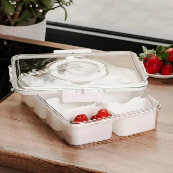 Пластиковий контейнер на 8 відсіків для зберігання їжі — 31х24х7 см