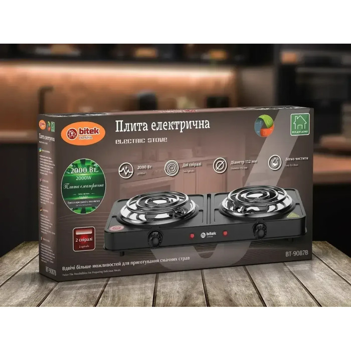 Плита електрична 2 спіралі 2000 Вт 132 мм BITEK BT-9087B
