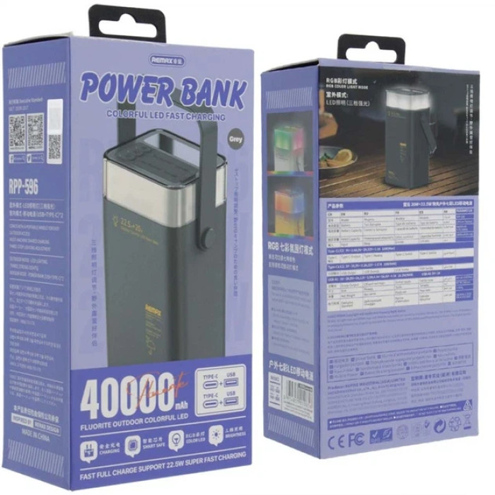Power bank REMAX RPP-596 40000 mAh PD20W+QC3.0(22.5W) зі швидким заряджанням