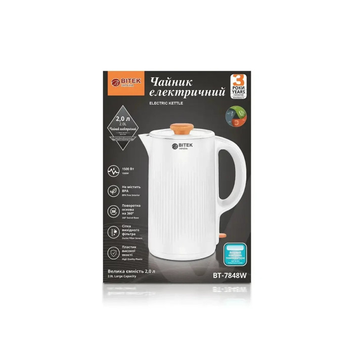 Электрический чайник 2л 1500Вт BITEK BT-7848W