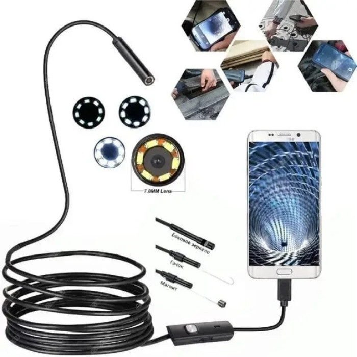 Эндоскоп Android and PC Endoscope, гибкая USB-камера 2 метра TYPE-C 3in1 AND120