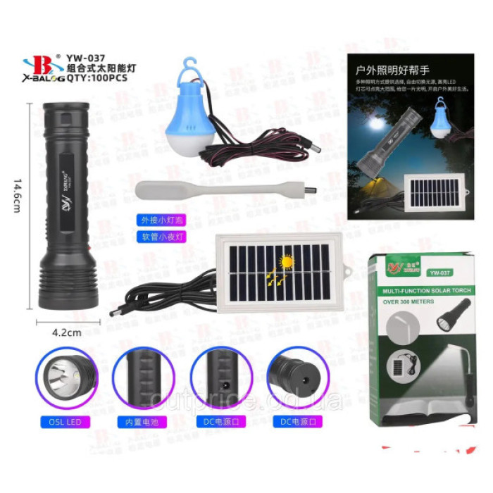 Фонарик ручной BL YW-037 +bulb+solar
