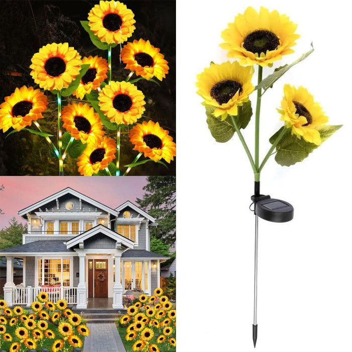 Світильник газонний садовий Соняшники на сонячній панелі із сутінковим датчиком 42,5 см 2 шт.