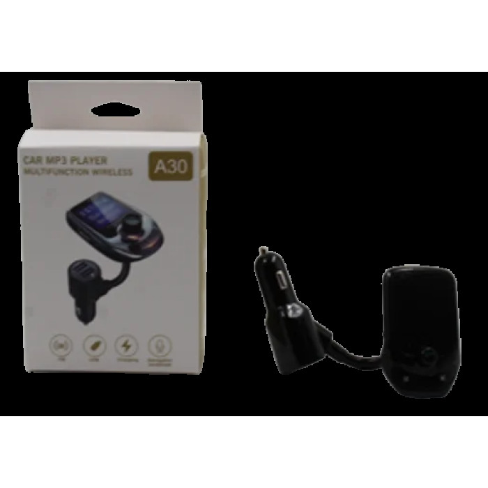 Трансмітер FM MOD. A30 + BT - для автомобіля підтримує Bluetooth, AUX, карти пам'яті, вбудований мікрофон, показує інформацію про заряд акумулятора. Автомобільний трансмітер FM-модулятор A30 Bluetooth обладнаний великим інформативним дисплеєм 1,44 дюйма, поворотна ніжка, яка згинається, дасть змогу оптимально розмістити пристрій щодо водія.