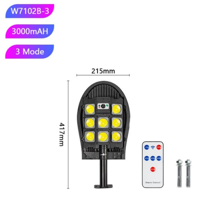 Вуличний ліхтар на стовп із сонячною панеллю W7102B-3