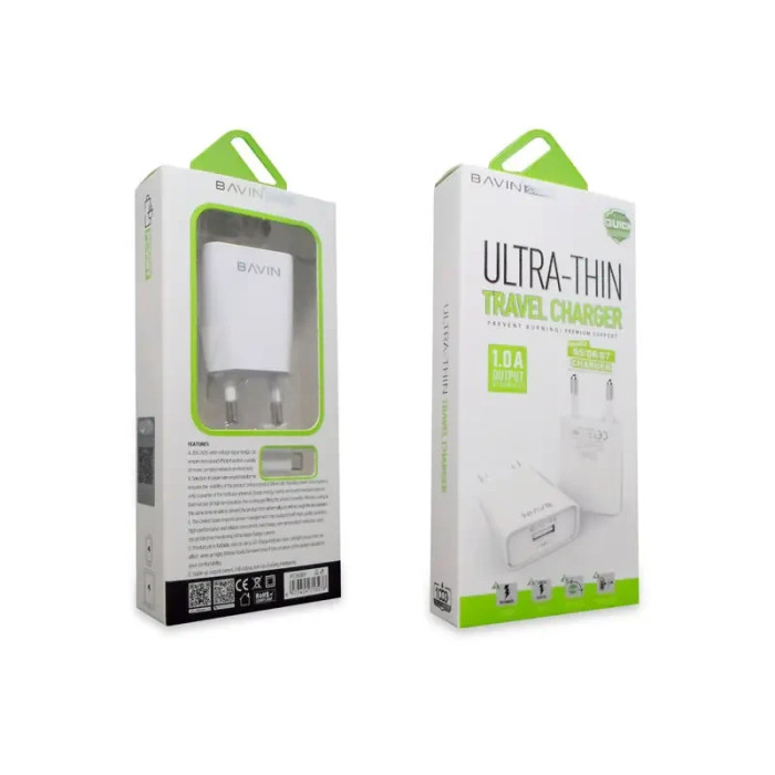 Зарядний пристрій 220 В 1,0 А з кабелем USB — micro USB BAVIN PC508Y-V8